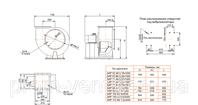Відцентровий вентилятор ВЦ 4-75 No4 з дв. 0,37 кВт 1000 об./хв