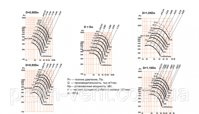 Аеродинамічні характеристики, вентилятор ВЦ 4-75 No12,5 з дв. 18,5 кВт 750 об./хв