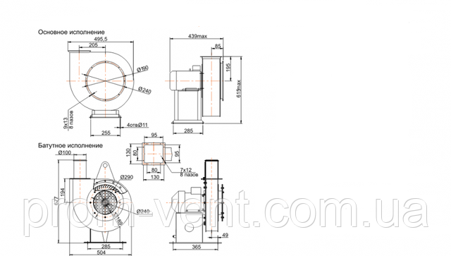 Габаритні розміри, вентилятор ВЦ 10-28 No3,15 з дв. 4 кВт 3000 об./хв.