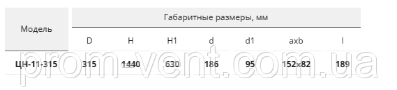 Габаритні розміри, циклон ЦН 11-315