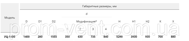 Габаритні розміри, циклон УЦ-1400