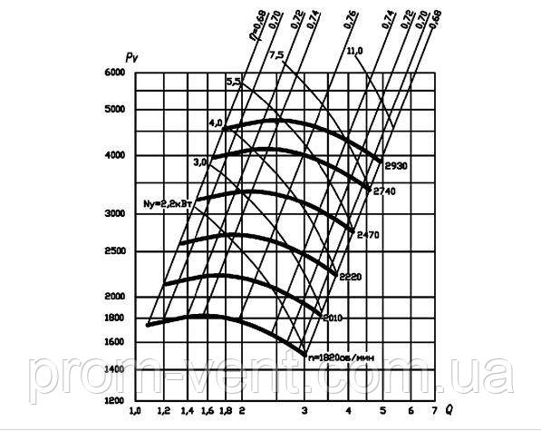 Аеродинамічні характеристики, вентилятор ВЦ 6-28 No4 з дв. 2,2 кВт 3000 об./хв.