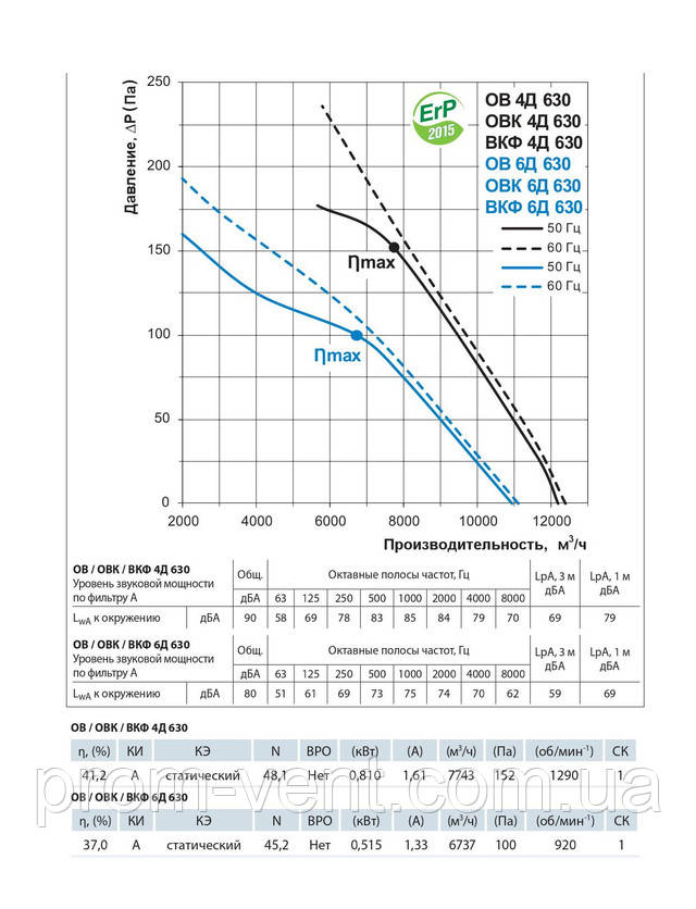 Аеродинамічні характеристики, вентилятор ВЕНТС ОВК 6Д 630